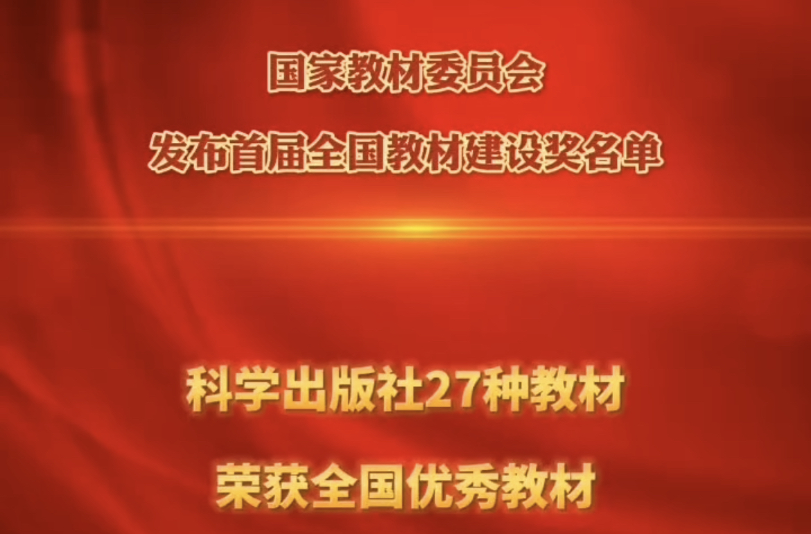 2021年10月9日,國家教材委員會(huì )發(fā)布了首屆全國教材建設獎獎勵決定,科學(xué)出版社27種教材榮獲首屆全國教材建設獎。