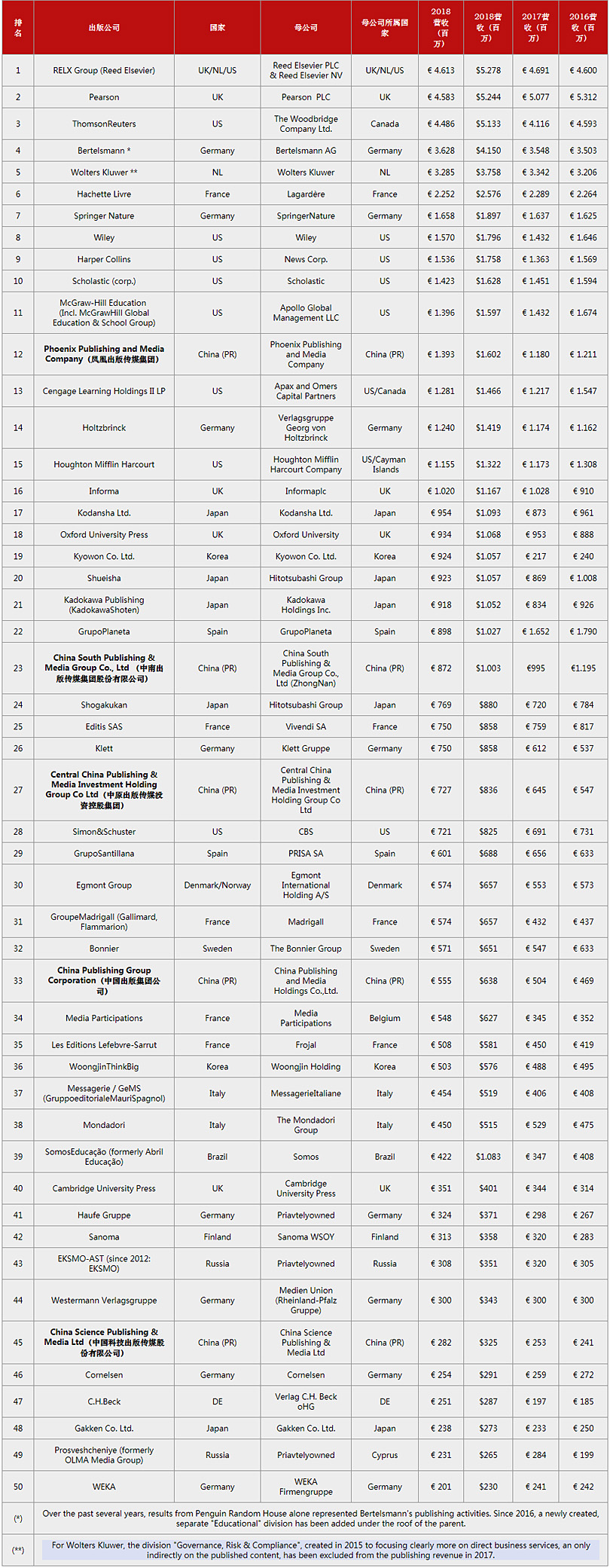 近日,2019年全球出版50強最新榜單發(fā)布,中國科技出版傳媒股份有限公司首次入圍“全球出版50強”,位列第45位。 “全球出版50強”排名相當于世界出版行業(yè)的“財富50強”,自2007年開(kāi)始首次發(fā)布,之后每年更新?!叭虺霭?0強排名”由法國出版雜志《圖書(shū)周刊》(Livres Hebdo)發(fā)起,由RWCC國際書(shū)業(yè)研究院(Ruedige...