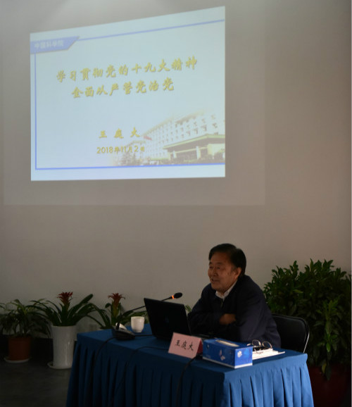 中央紀委駐院紀檢組原組長(cháng)王庭大書(shū)記做了《學(xué)習貫徹黨的十九大精神,全面從嚴管黨治黨》的輔導報告。王書(shū)記結合中央黨的十九大精神,從關(guān)于馬克思主義的黨、全面從嚴治黨、新時(shí)代黨建的要求三方面闡述了全面從嚴治黨的理論和實(shí)踐。